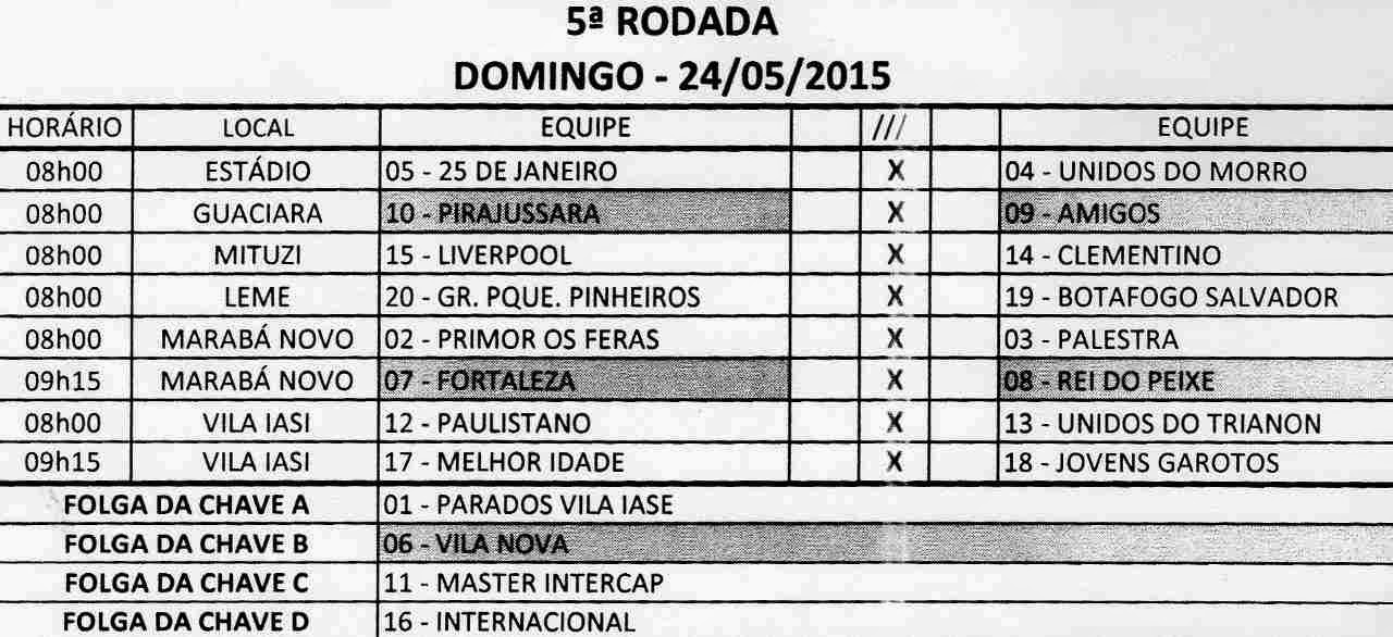 CONFIRA OS RESULTADOS DA 5ª RODADA